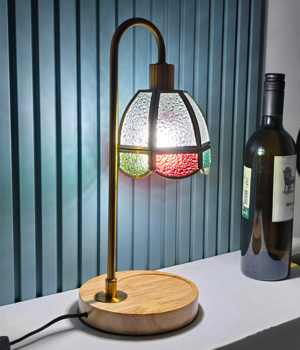 E26베이스 트랜디한 골드 & 우드 스테인드글라스
